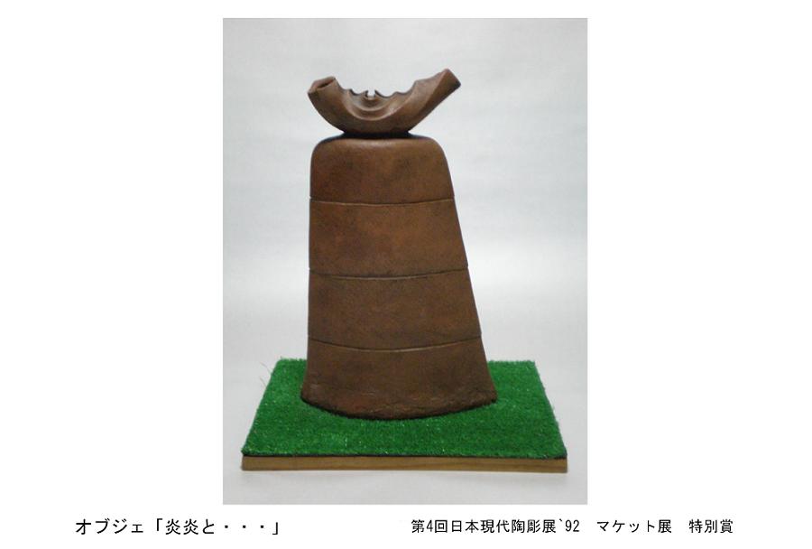 92年日本現代陶彫展の募集要項を見て陶彫という分野に興味をもった。それはただ彫刻の素材が陶であるというイメージではなく、陶とは何か? なぜ陶を使うのか? 陶で何を表現するのか? という問い掛けであった。また野外設置ということで形よりも構造や安全性を重視しなければならない。